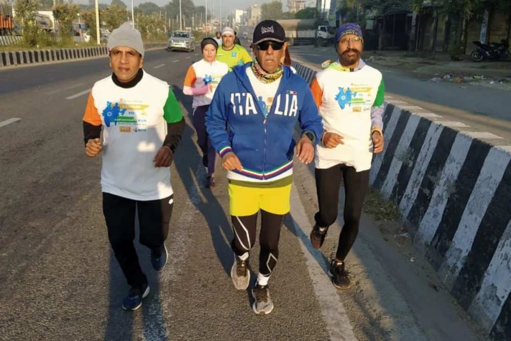 Kumar Ajwani, 61 years of age is running from Kashmir to Kanyakumari and covering a distance of 4,444 kms over a period of 76 days. He is attempting to create a world record by achieving this feat.
