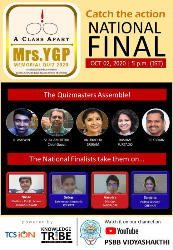 The pandemic did not come in the way of some pulsating action on the small screen. It was not the IPL cricket tournament but a record twenty four thousand school students from across India who vied with one another at the maiden ‘A Class Apart Mrs.YGP Memorial National School Quiz’ conducted online.