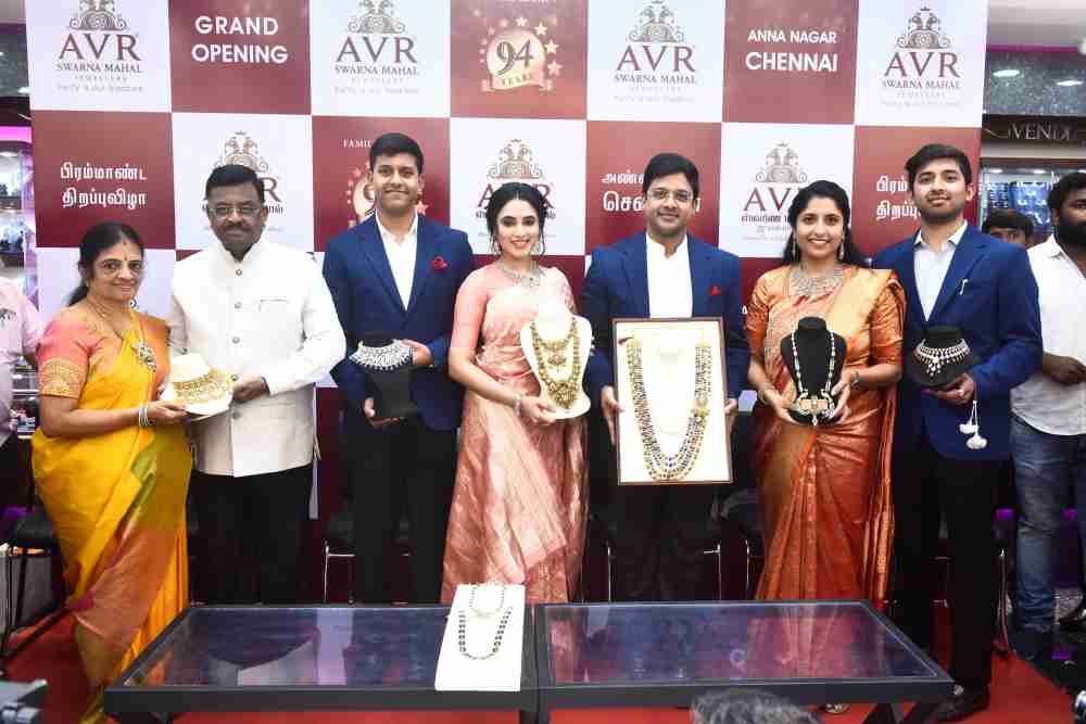 Mr.A.B.S.Sanjjay (Managing Director, AVR Swarna Mahal Jewellers) & Mrs.Saumyha Sanjjay (Director, AVR Swarna Mahal Jewellers) in the presence of Brand Ambassador Priyanka Arul Mohan and the AVR Swarna Mahal Jewellers family present 94 years of tradition in purity and the first showroom in Chennai is a testimony to the underlining values of purity in tradition encompassing the elements of product, design, variety, price and service.
