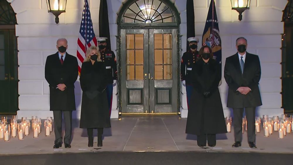 Alongside these measures, he held a candlelight vigil outside the White House to mark this grim moment in American history as 500,000 Americans had lost their lives due to the virus. He was joined by First Lady Jill Biden, Vice President Kamala Harris and Second Gentleman Doug Emhoff. The memorial included a moment of silence and lighting of 500 candles to signify the number of lives lost.