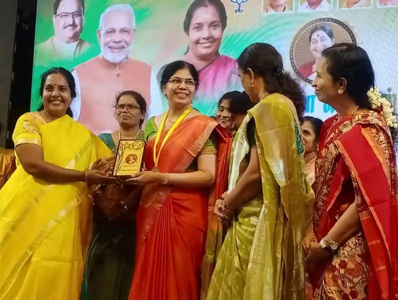 Dr. Ezhil Malar was decorated with the Sushma Swaraj award in 2023 for the best doctor in North Chennai for her 3 decades of exemplary service to society. She received the award from Vanathi Srinivasan of the BJP.