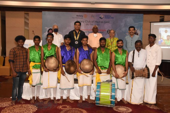 Rotary Club of Madras East in association with Saraswathi Vidyalaya Senior Secondary School presents Dronacharya Award 2021, to Gramiya Kalaimani, Kannan Kumar, Folk Artist – Deverattam Dance Form in the presence of Guru Lakshmi Viswanathan, Dancer, Author & Choreographer.