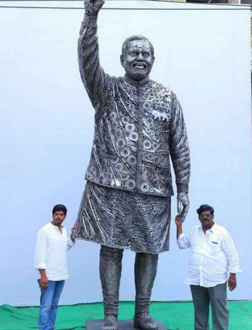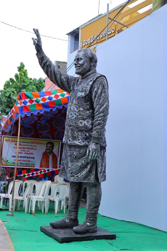 Two sculptors of Guntur district in Andhra Pradesh have built a 14 feet statue of Prime Minister Narendra Modi by making use of scrap material. The father-son duo K.Venkateswara Rao and K. Ravi Chandra began work 2 months ago.