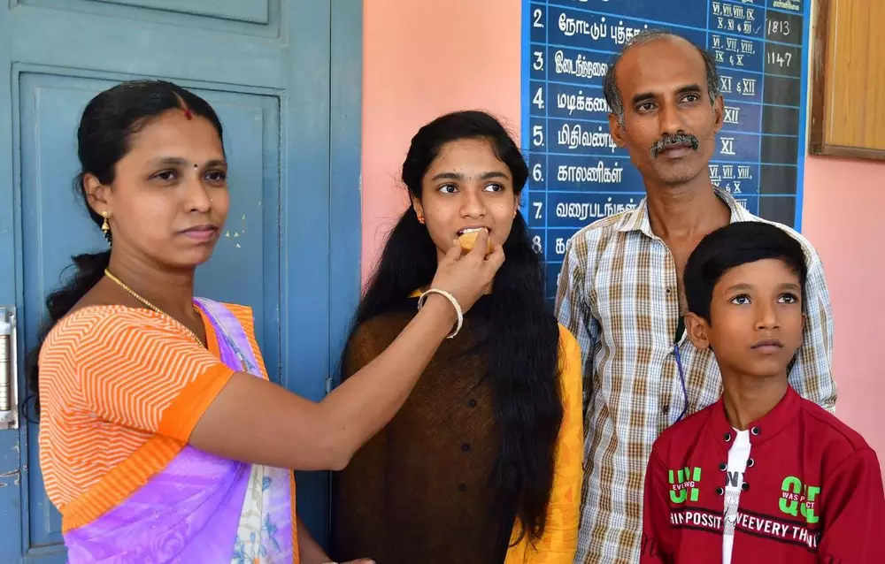 Nandhini has been receiving congratulatory messages and media attention since the results were declared yesterday. There was a celebration at her home in Nagal Nagar along with her family and teachers.