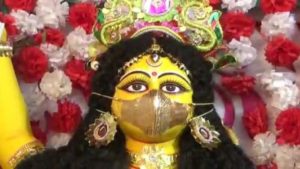 With Covid numbers rising , there are restrictions for celebrating Durga Puja across the country. So the organisers of the festival in Kolkata decided to make the Goddess wear a 20gm golden mask this time and the idol is seen holding the sanitiser, syringe, thermometer and other medical equipments. The organisers announced that this was done so as to increase awareness about the Covid situation. “The thought behind this is that every daughter is a golden girl of Bengal, and every parent wishes to cover their daughter in gold. We have not placed the 20-gram gold mask as metal here. We have placed the mask to raise awareness and to promote the message that during this ongoing Covid-19 pandemic, it’s critical to follow the doctor’s safety advice,” said TMC MLA and Bengali singer Aditi Munshi who unveiled the idol.