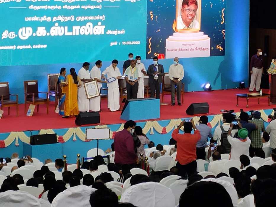 He received an award called the ‘’Ambedkar Chudar Award’’ from the VCK Party. Though on principle, he is not in favour of receiving awards, he made an exception to this as it is the only organization that fights for the rights of the dalits and the award was given in recognition of his work for the cause of the dalits.