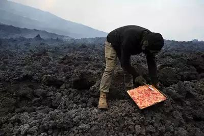 Pacaya volcano in Guatemala has been erupting since February this year and local communities and authorities are kept on high alert. However for David Garcia, who is a 34 year old accountant, the molten lava oozing down the mountain has become his kitchen. He rustles up a pizza named ”Pacaya Pizza” on the volcano rock much to the amusement of locals and tourists.