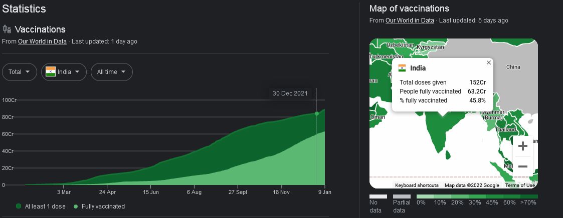 According to Health Ministry sources, more than 150 crore of Covid-19 vaccine doses have been administered in India. This 150 crore milestone was reached yesterday and Union Health Minister Mansukh Mandaviya called it a ”historic development” that was achieved due to the hard work of healthcare workers under the able leadership of Prime Minister Narendra Modi.