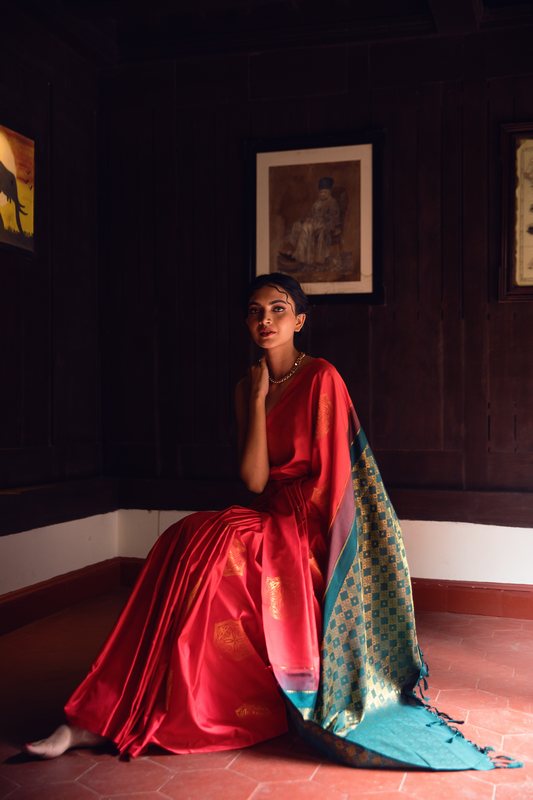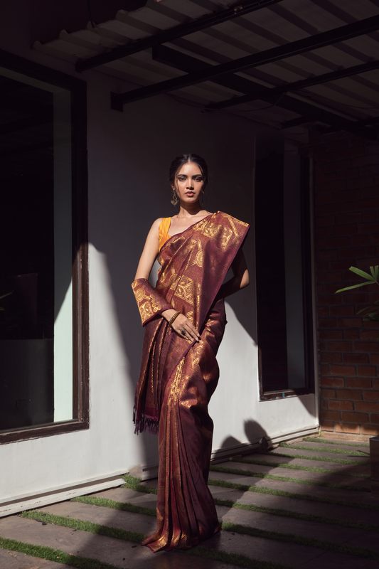 This “Wild & Free” approach is a novel experiment in Kanchipurams, as the designs range from South Asia and touches upon rich cultures across the globe. “Mundanity is unappealing. This collection is for women who wish to see a change in their lives as well – who are willing to stop and rethink. They envision a future that is still taking shape – toying around with raw emotions that are unperturbed by the external noise and dogmas. Even a simple start can turn into something monumental. This collection is a celebration of an ideology that not everything needs to be set within a box, a routine, a fashion trend.” says Jeyasree Ravi.