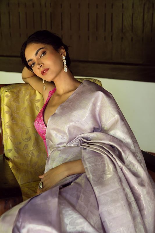 Palam Silks has turned into a Seeker as it explores several nooks and corners of the finest design palettes. The collection projects traditional Annam damask, floral Alpana drawings, Mandalas expressing their fierce versatility, metallic filigree motifs inspired from crystal jewellery, Spanish floor art and medieval Victorian ornamental handwork. Unlike taking a grassland with trees paving a way, Palam Silks has explored roads untraveled and found inspiration in world art.