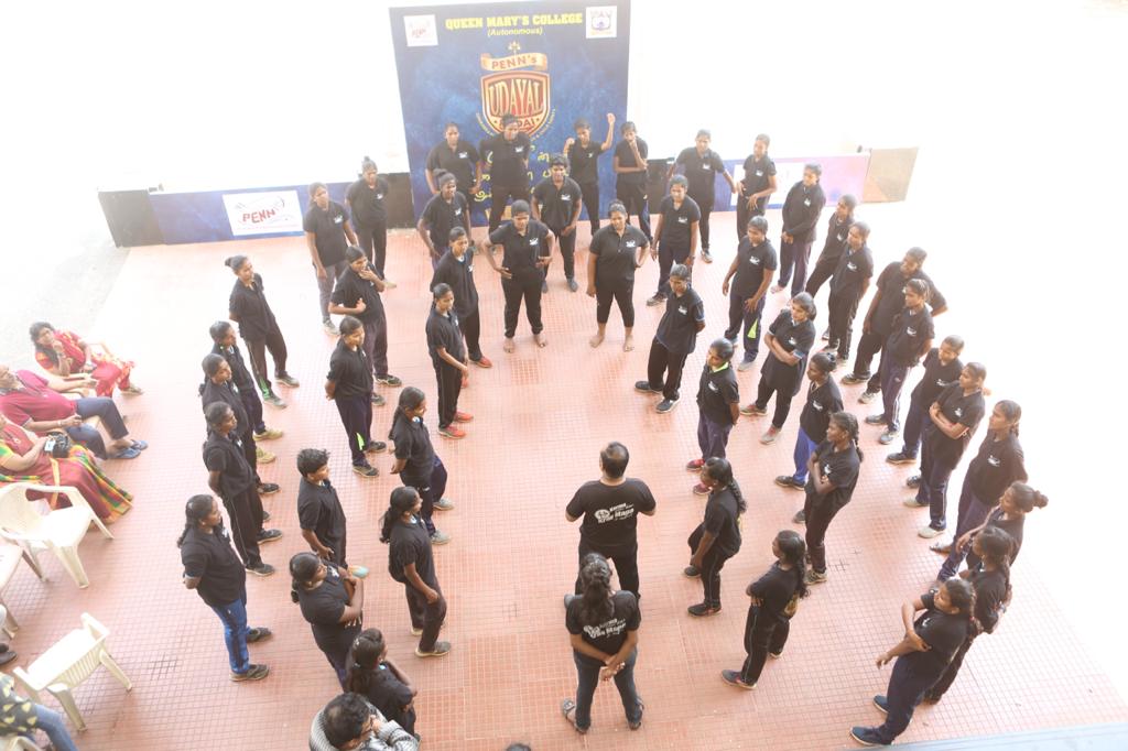 Working towards the goal of protecting and empowering women and children, the first Udayal Padai was commissioned at Queen Mary’s College, Chennai on the 16th of March, where 50 students participated and received training. The Krav Maga Workshop for students was conducted by coaches Mithun and P. Varsha.