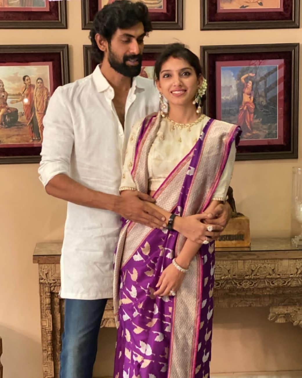 In one of the pictures, Rana and Miheeka are posing with his in-laws for a happy family photo. Another click captures a sweet moment featuring the beautiful couple.