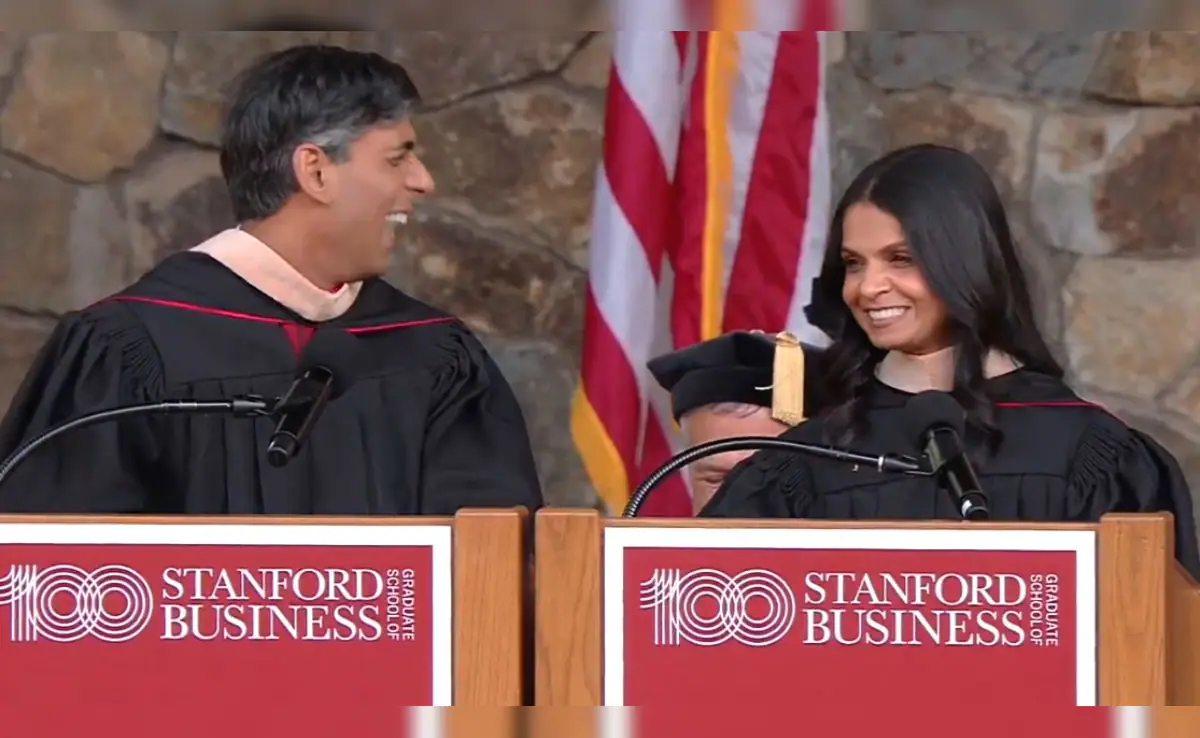Two decades after they met and fell in love on the campus, Rishi Sunak and his wife Akshata Murty returned to Stanford Graduate School of Business, not as students but as commencement speakers for the Class of 2025.