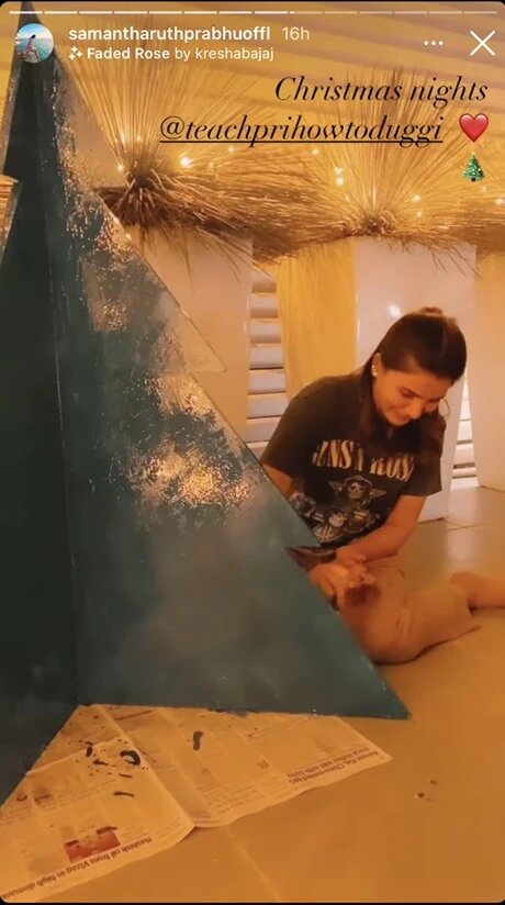 One of the most joyous seasons of the year is around the corner and the preparations have begun. From buying a Christmas tree and decorating it to preparing exotic treats and exchanging gifts, everyone is set for the celebrations. Samantha Akkineni is equally excited and was seen painting her Christmas tree. The stunner shared a couple of videos of her painting the tree in green and she looks super happy. One can see in the pictures, Sam is gearing up for the festive season as she captions it, “Christmas Nights.”