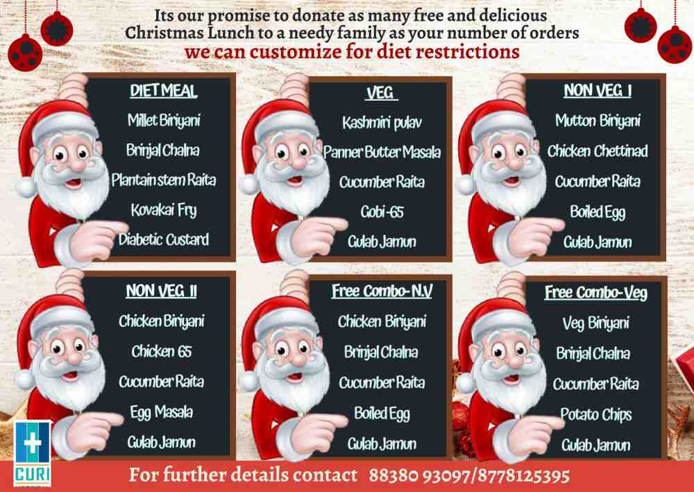 Christmas season is here once again and brings with it the spirit of caring and sharing.In keeping with this spirit, CURI Hospital (Chennai Urology and Robotics Institute) at Thoraipakkam, OMR, Chennai came up with a novel idea last year of sharing meals with the less privileged. As it turned out to be successful, they are at it again this year.