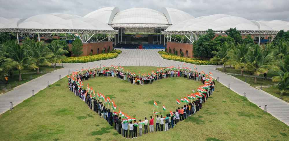 At least 275 youth from across the world joined in the National Tiranaga campaign at Kanha Shanti Vanam – the Heartfulness Headquarters in Hyderabad. Each of the individuals carried a national flag cheering for India in front of the world’s largest meditation centre at Kanha Shanti Vanam. The youth arrived at the Heartfulness headquarters for the International Rising With Kindness Summit which is slated between 12-14 August. The National Tiranga campaign comes a day before the Kindness summit as a tribute to 75 years of India’s independence. The event was made all the more significant with participants from other countries coming together holding the tricolour flag. The event took place at 9.00am at Kanha Shanti Vanam.